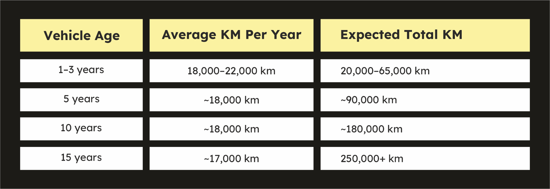 Knowing the average car kilometers per year helps you understand whether a used car has been driven more or less than normal.